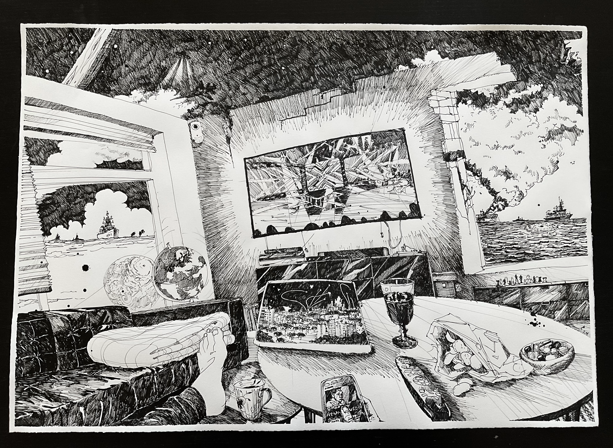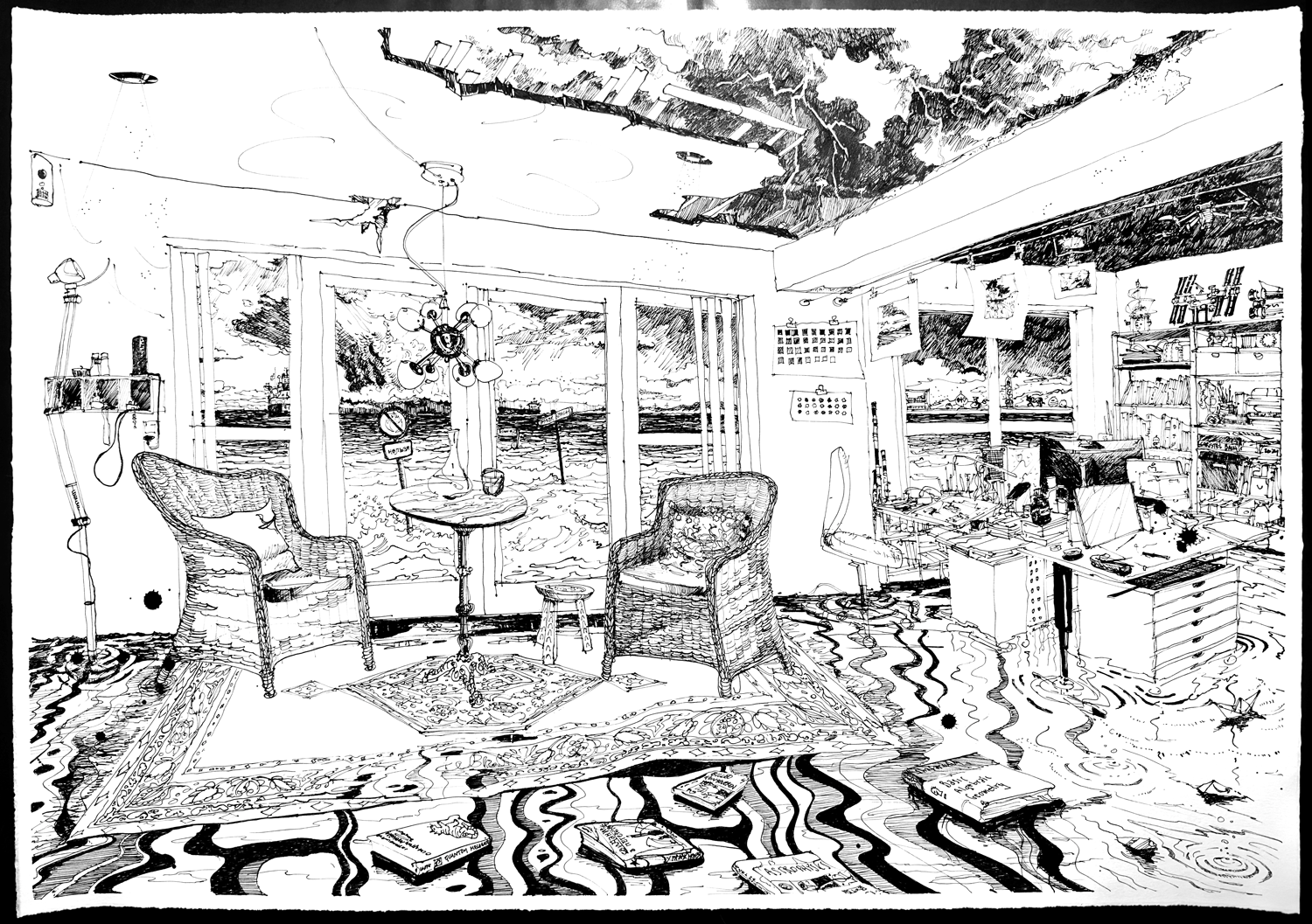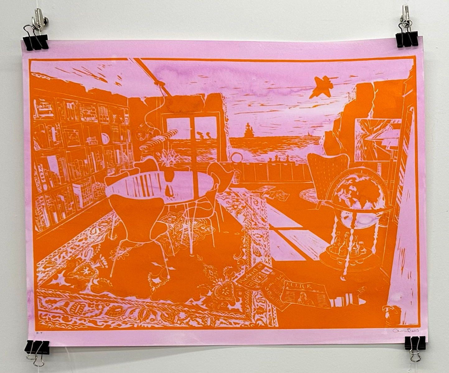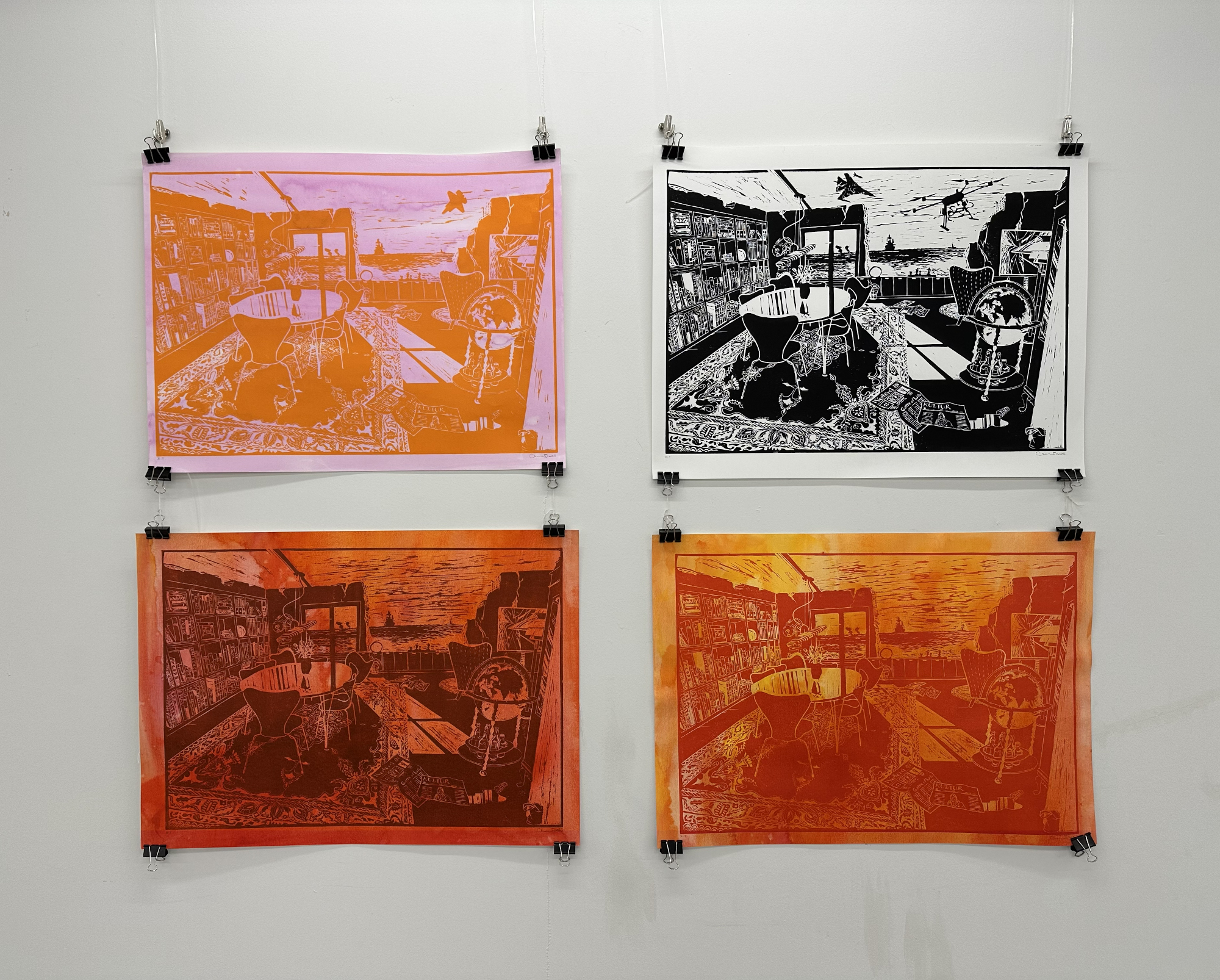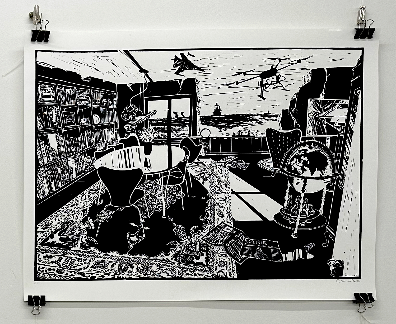 For tiden er jeg rejst tilbage til rødderne, til grafikken og til den sorte tush. Jeg er begejstret for sort flydende tush, tryksværte og skæve farveakkorder. Mine motiver tager udgangspunkt i den hjemlige tryghed med en spejlverden af interiørlandskaber sat i kontrast til al det der vælter om ørerne på os. Roen finder jeg i havet. Det uendelige hav høje dybe brede landskaber og vandskaber der snor og vrider sig, i uendelige universer og en uundgåelig horisont eller to. Smagsprøver fra nyere udstillinger eller dugfriskt fra atelieet. Arkiv i menuen øverst. Dette website er endnu lidt håndholdt. (Kun Linocut, Ink, Etchings and Drypoint, Cyanotypi, Colorpencils og Paintings er fungerende lige nu, resten er på vej...!)